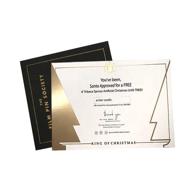 Cartes de remerciement personnalisées de luxe, style carte de vœux, pour les entreprises, en carton noir, avec estampage à chaud en or