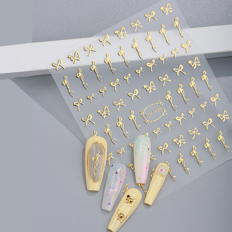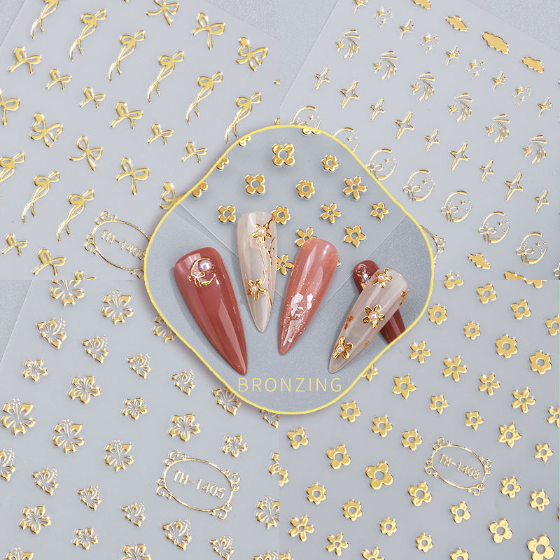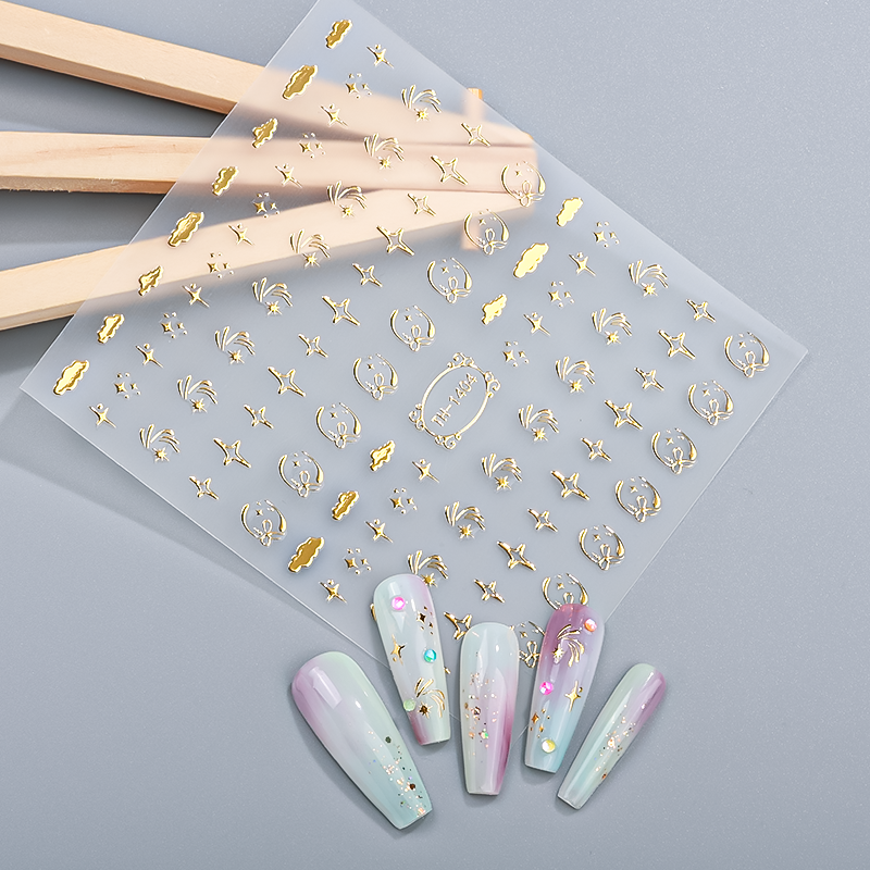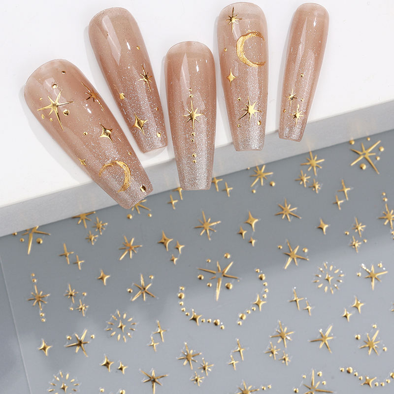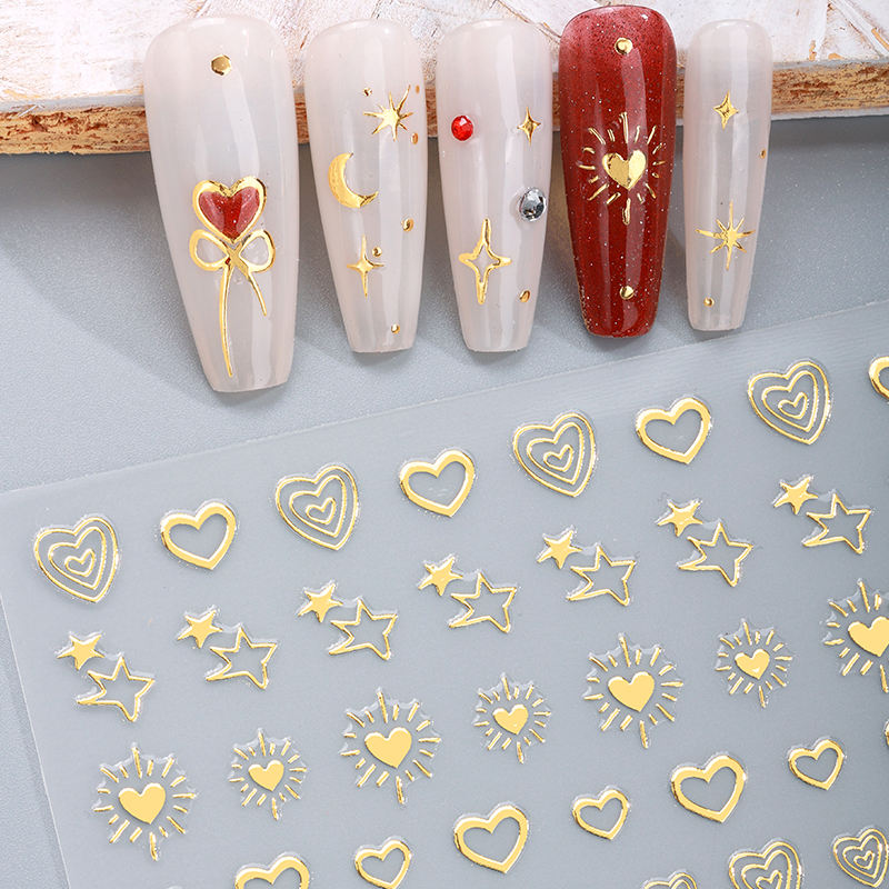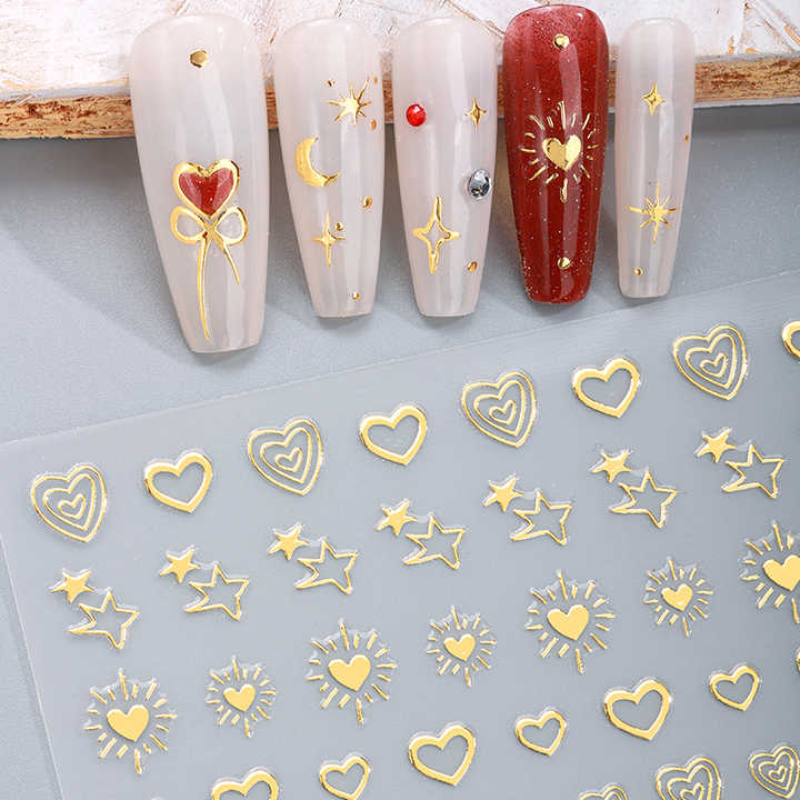 Autocollant pour ongles personnalisé de luxe avec logo 3D en métal doré, motif étoile, lune, cœur, design artistique