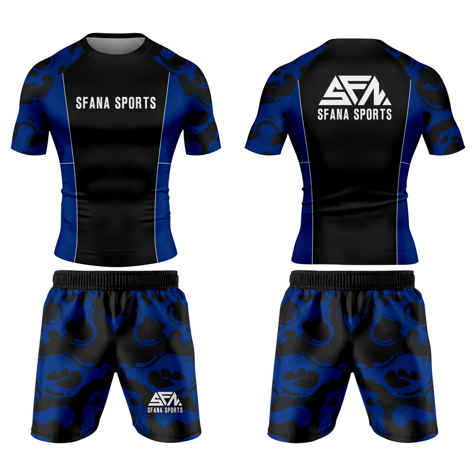 Personnalisé MMA BJJ Rash Guard & Shorts Ensemble pour Hommes à Manches Courtes Compression Fit Athletic Training Wear Moisture Wicking Durable Gear