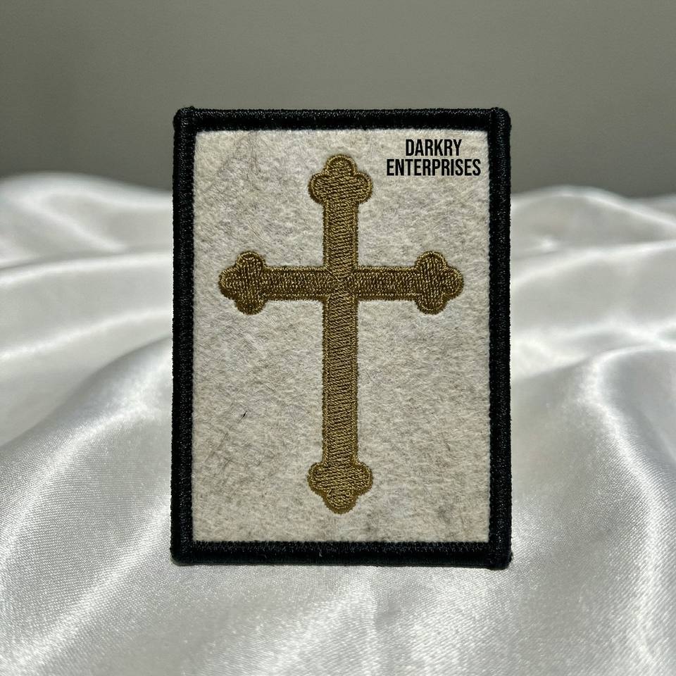 Écusson thermocollant personnalisé brodé à la machine, mains en prière avec croix, emblème religieux, fond en feutre blanc, pour vêtements et sacs