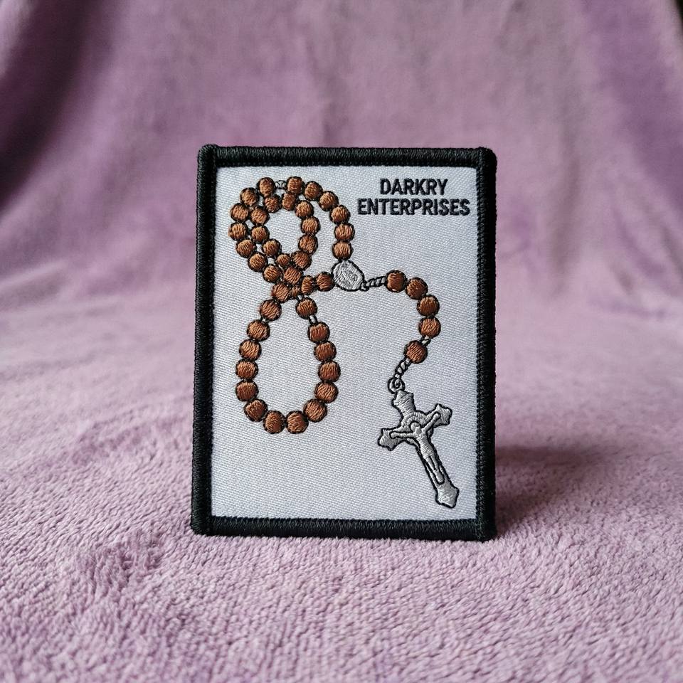 Patch brodé personnalisé thermocollant, motif croix de perles de chapelet, logo religieux chrétien, pour décoration de vêtements