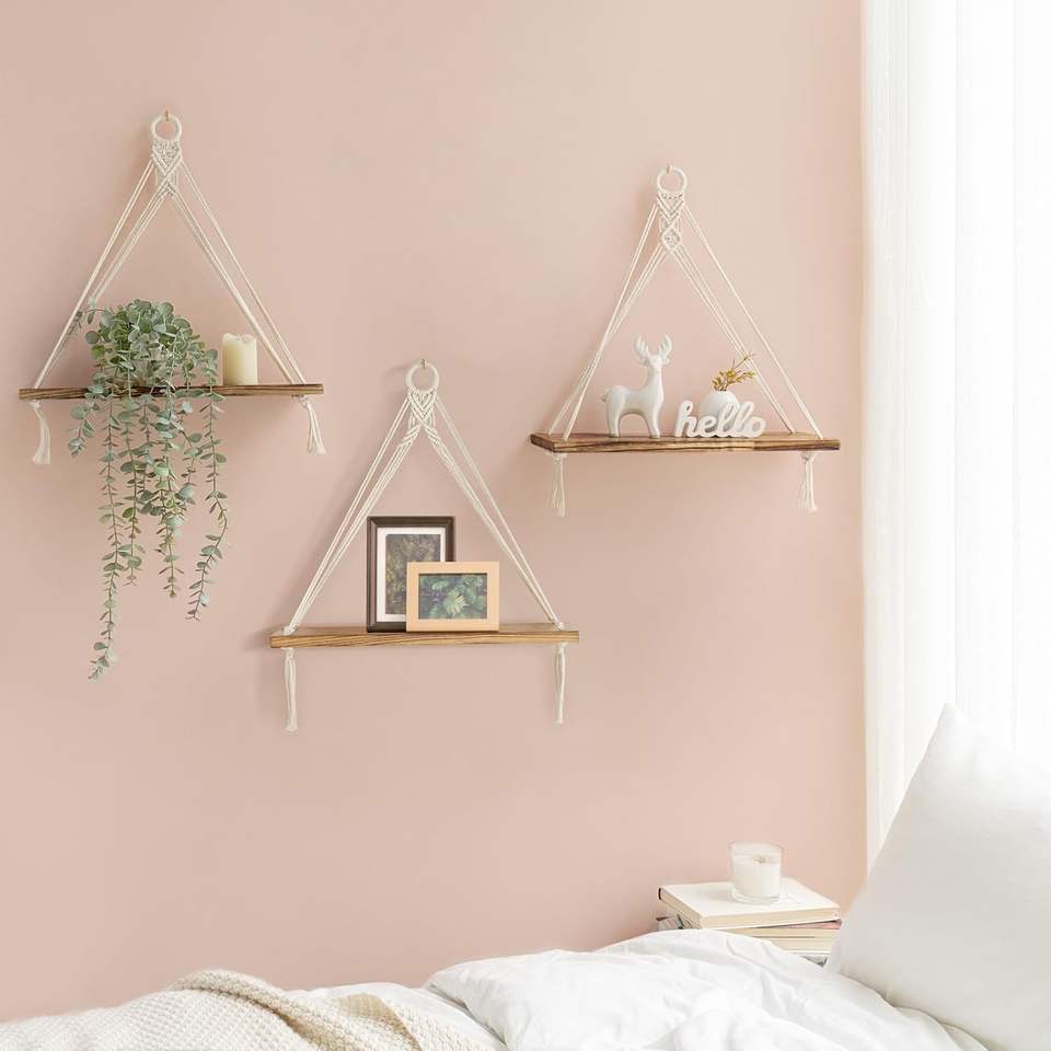 Étagères murales suspendues en macramé personnalisées, décoration murale, étagère flottante en bois pour chambre à coucher, salle de bain, salon, chambre d'enfant, étagères de présentation