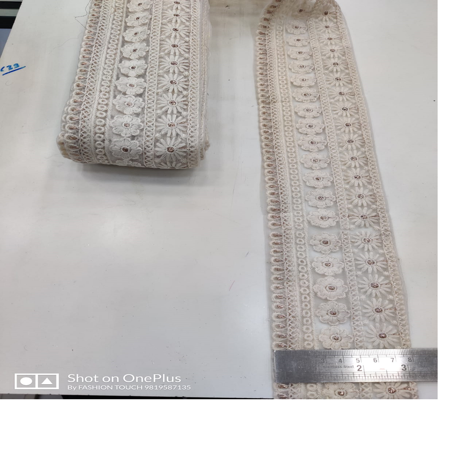 Robes de mariée sur mesure en organza blanc de 1 pouce de largeur, écologiques, à une seule face, brodées avec des broderies dorées en rubans et en dentelle