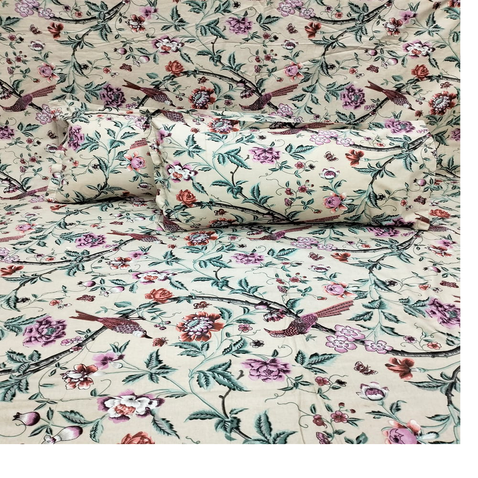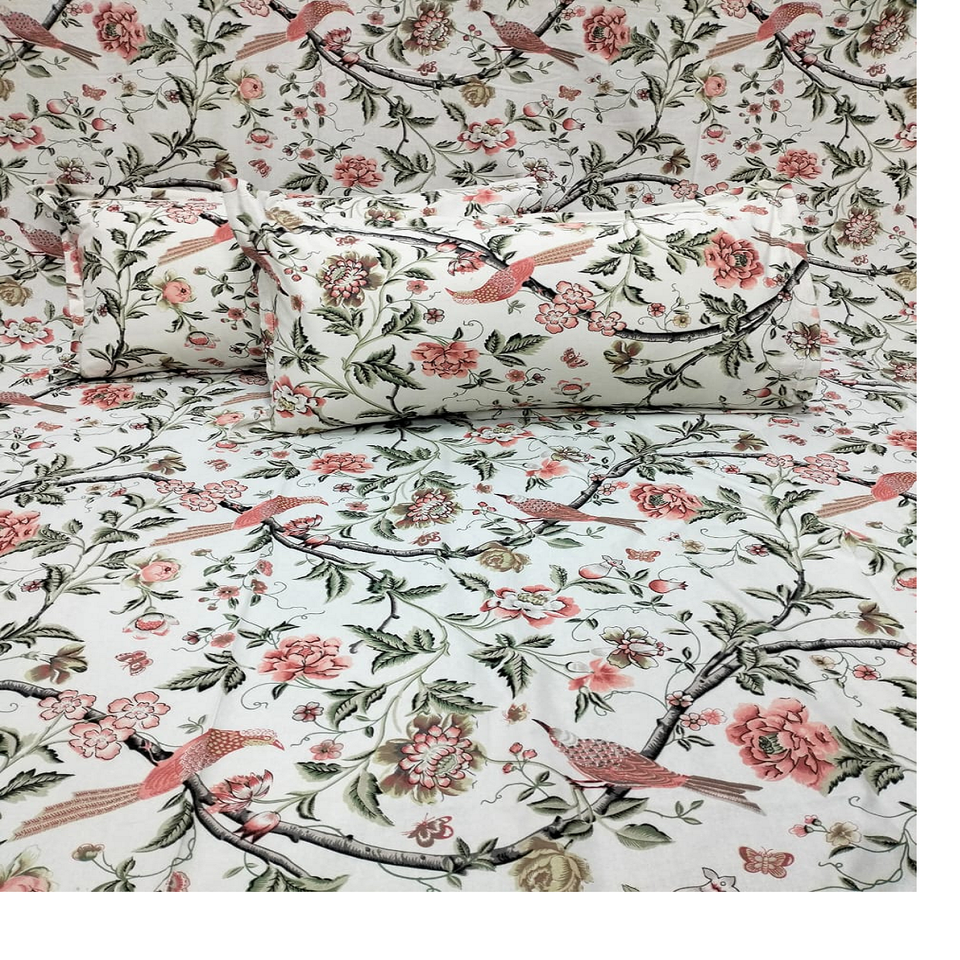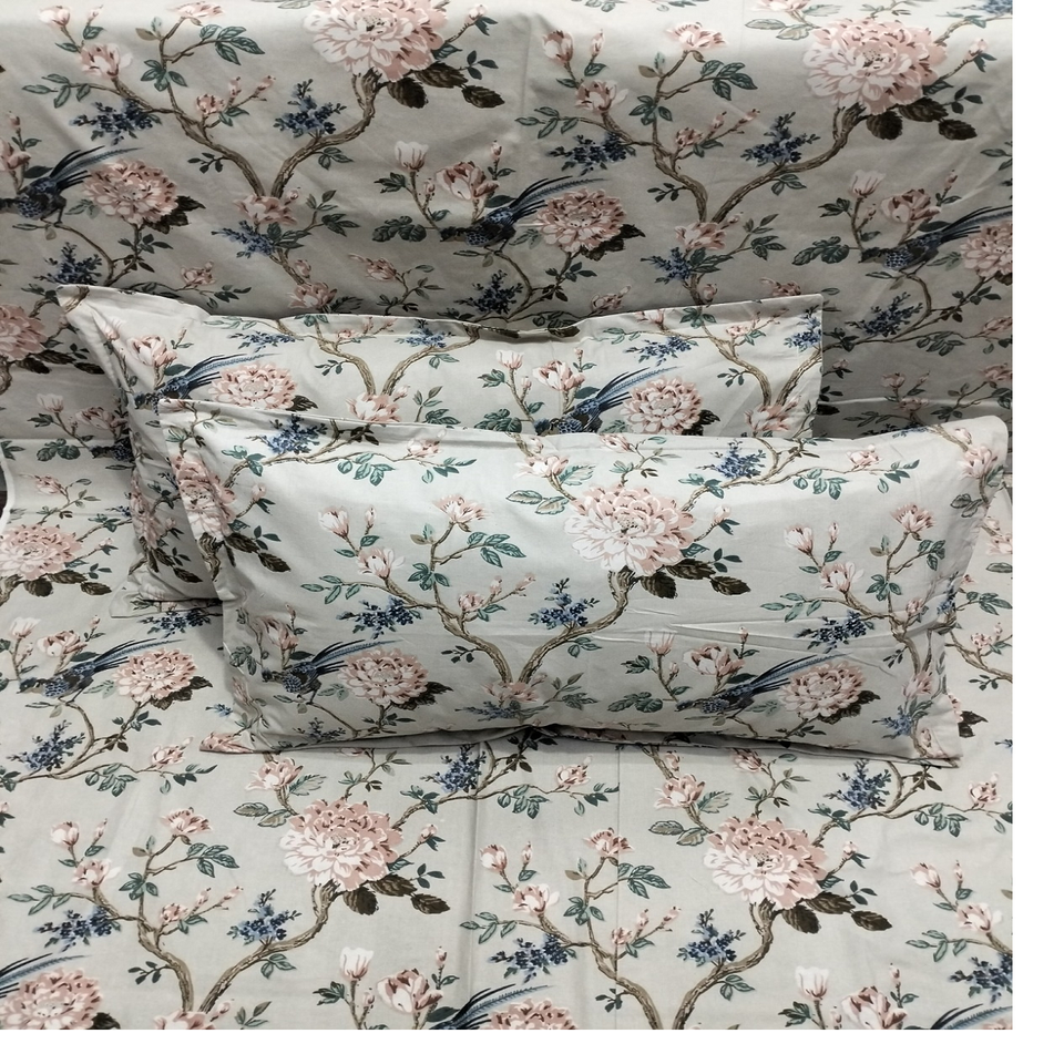 Draps de lit 100% coton sur mesure de différentes tailles dans des motifs floraux dans des couleurs pastel sur tissu de base blanc pour la revente.
