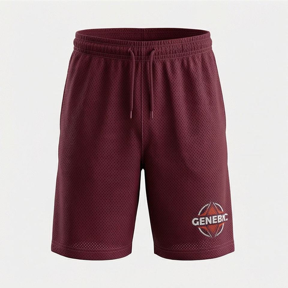 Shorts amples longs en polyester/coton sur mesure pour homme, avec logo brodé effet usé, taille mi-haute, style streetwear hip-hop, séchage rapide