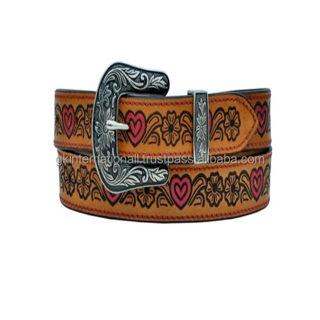 Ceinture d'outillage en cuir de vache occidentale véritable 100% sur mesure 40mm avec design en relief floral Fabricant de grossiste en Inde