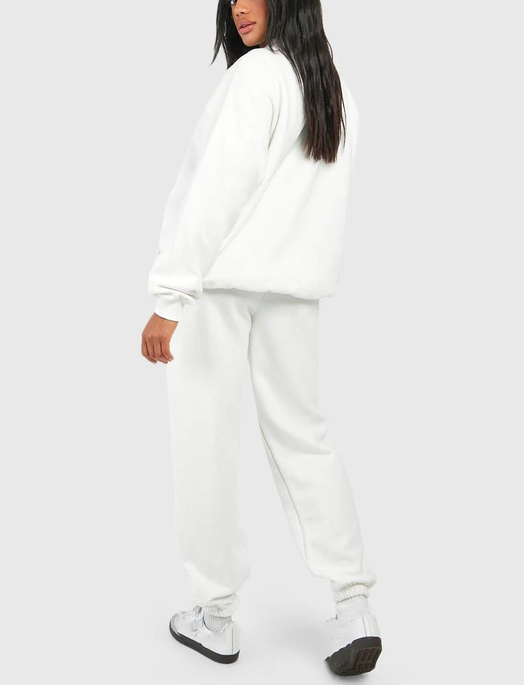 Survêtement surdimensionné pour femme en polyester 100% personnalisé, épaules tombantes, logo imprimé DTF, molleton 320g, ensemble deux pièces uni, capuche, hiver