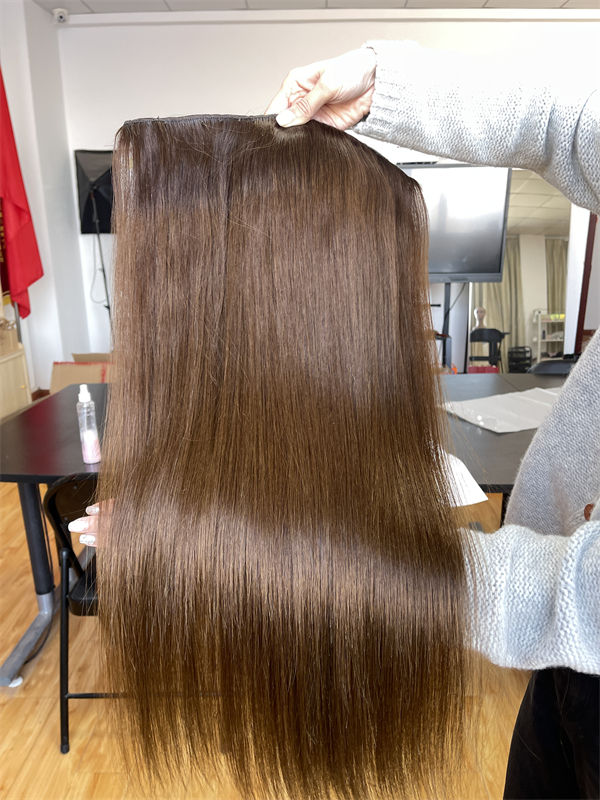 Extensions de cheveux invisibles en forme de pieuvre 10D sur mesure, cheveux vierges bruts, 22 pouces, gamme de 40%, couleur ombrée brun, lisses et soyeuses