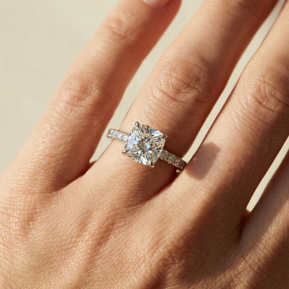 Diamond Weight & Size:1 Ct 2 Ct 3 Ct 4 Ct (7MM Cushion)