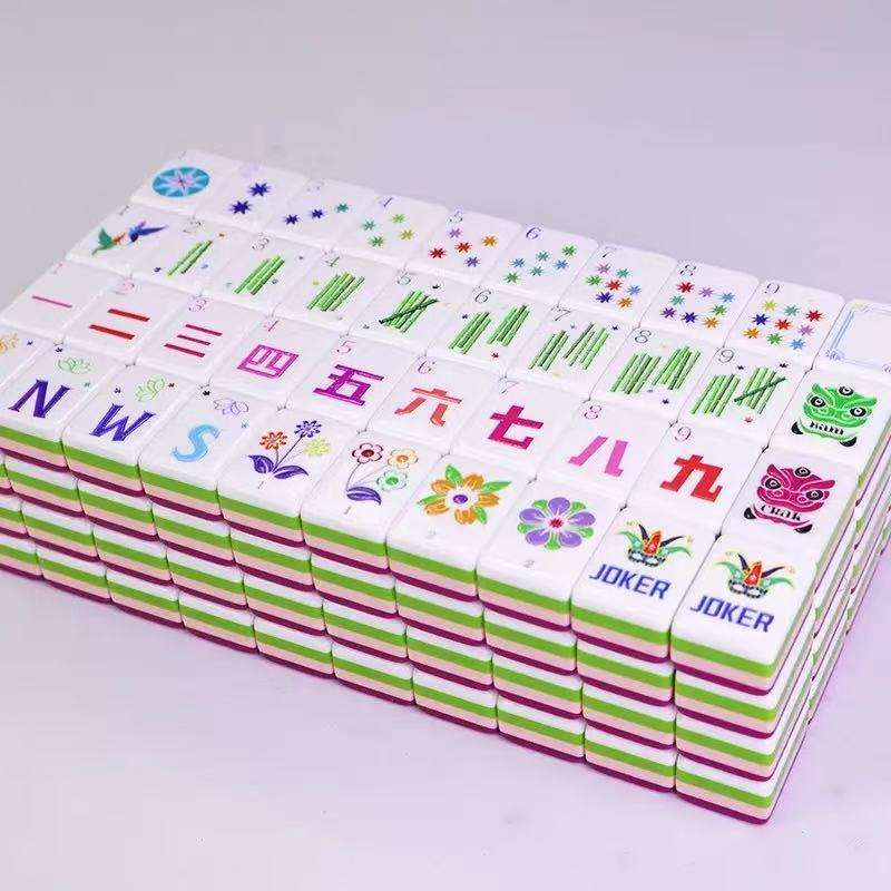 Jeu de Mahjong américain sur mesure à 4 couches, tuiles en acrylique rouge rose avec 160 cartes, ensemble de jeu de luxe portable pour adultes, cadeau