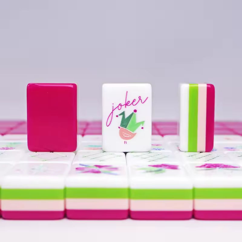 Tuiles de mahjong américaines sur mesure à 4 couches, tuiles en acrylique rose avec 160 cartes, ensemble de jeu élégant et luxueux pour adultes et cadeaux