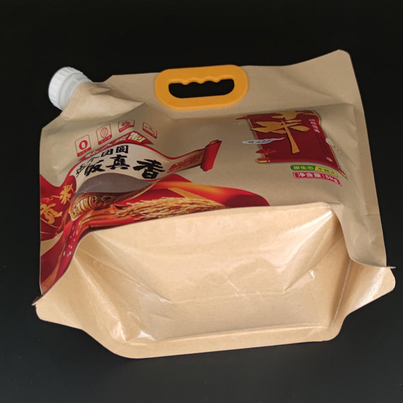 Sacs d'emballage pour riz imprimés en couleur sur mesure de 5 kg, en papier kraft avec bec verseur, qualité alimentaire, pour le stockage des céréales