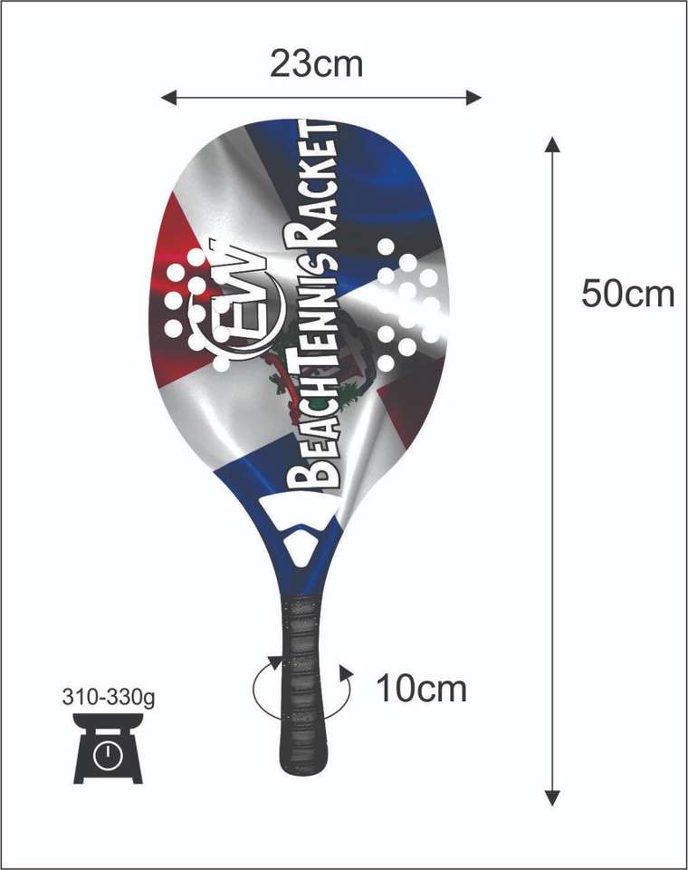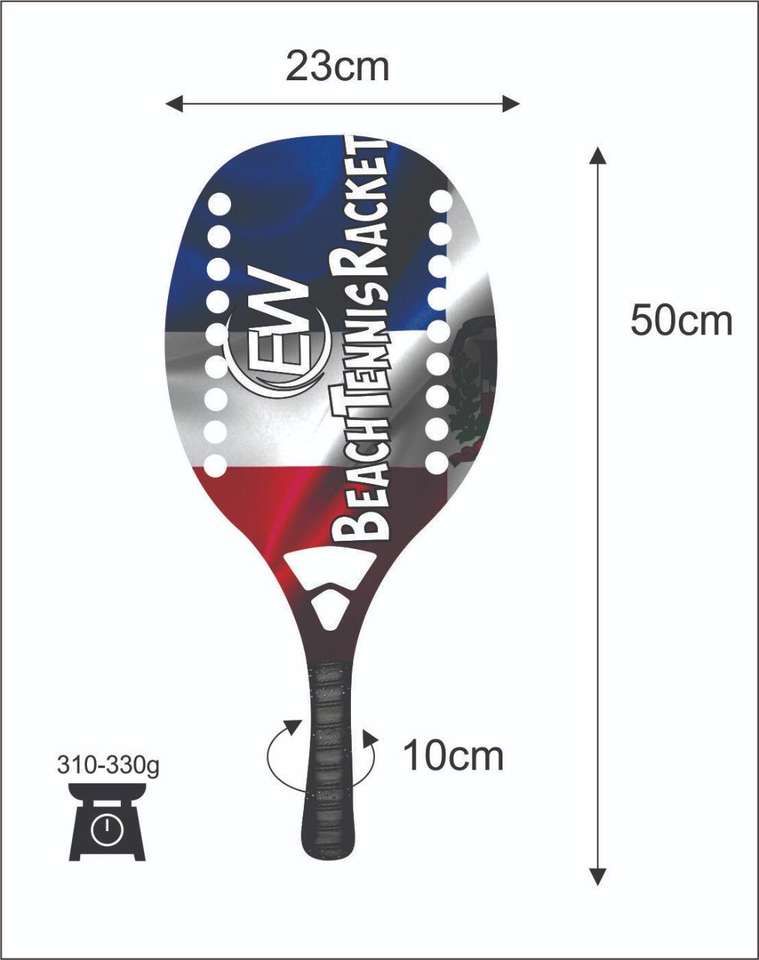 Raquettes et pagaies de beach tennis sur mesure avec face en fibre de carbone et verre, poids 310-330g, longueur 50cm - Fournisseurs de matériel de plage