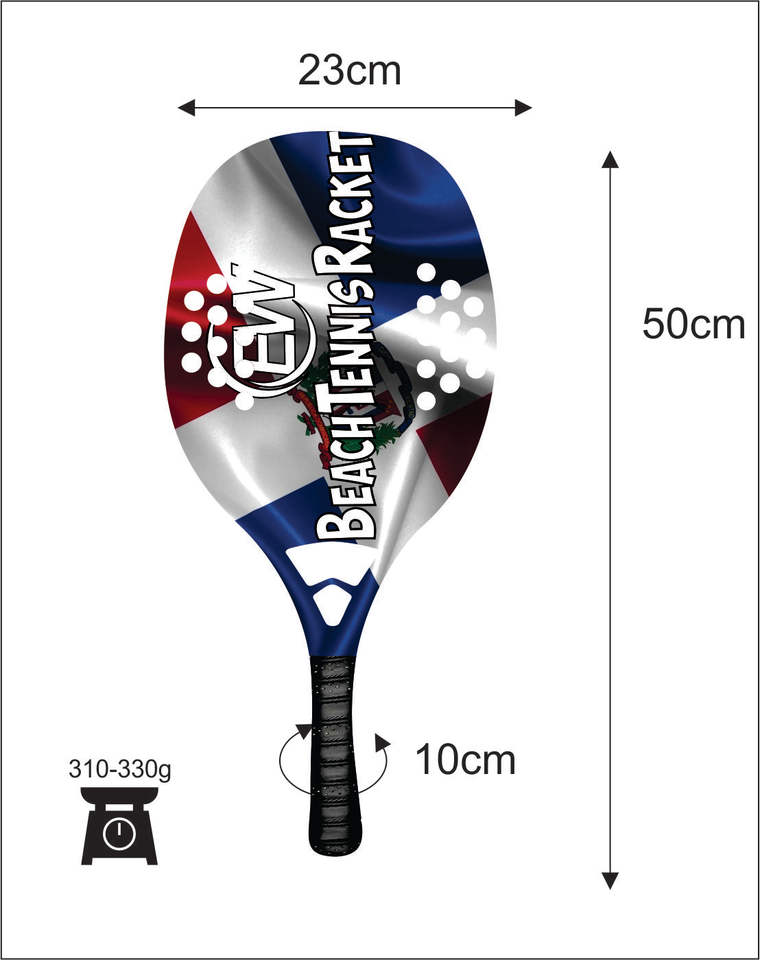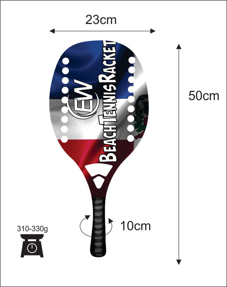 Raquettes de beach tennis et de padel sur mesure avec logos en fibre de carbone et verre, combinaisons de couleurs, poids 310-330g, longueur 50cm