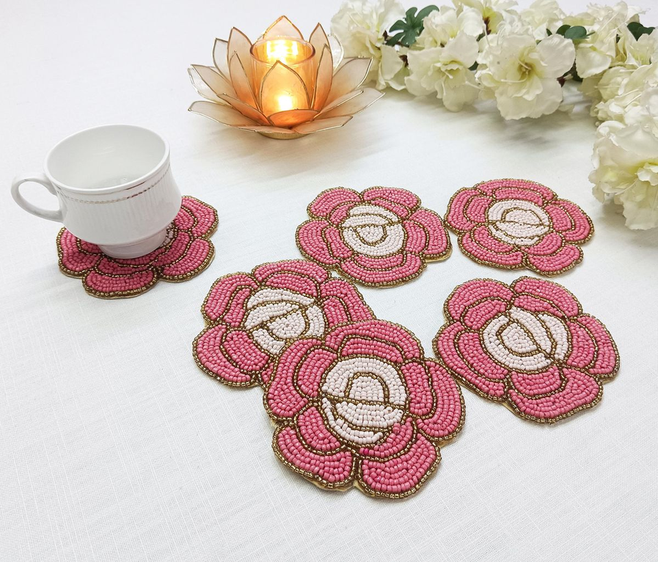 Sous-verres brodés de perles sur mesure pour cadeaux, élégants sous-verres de table en perles de rocaille pour la maison et les cafés avec design personnalisé