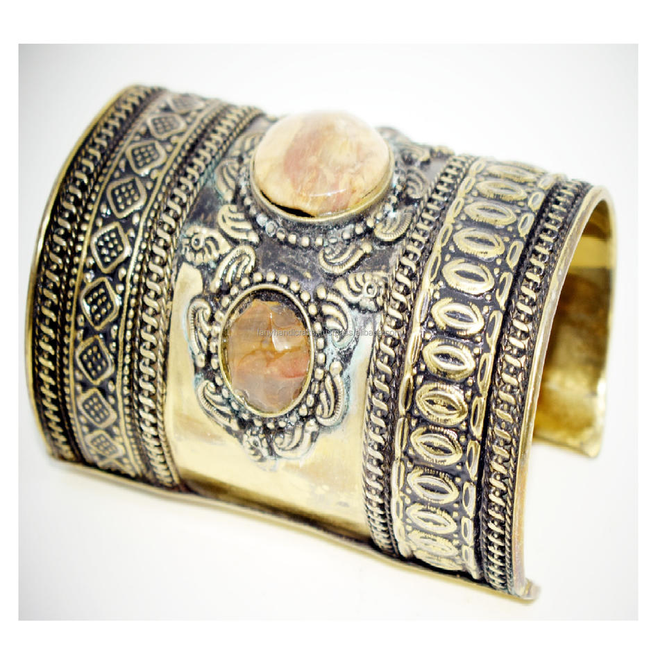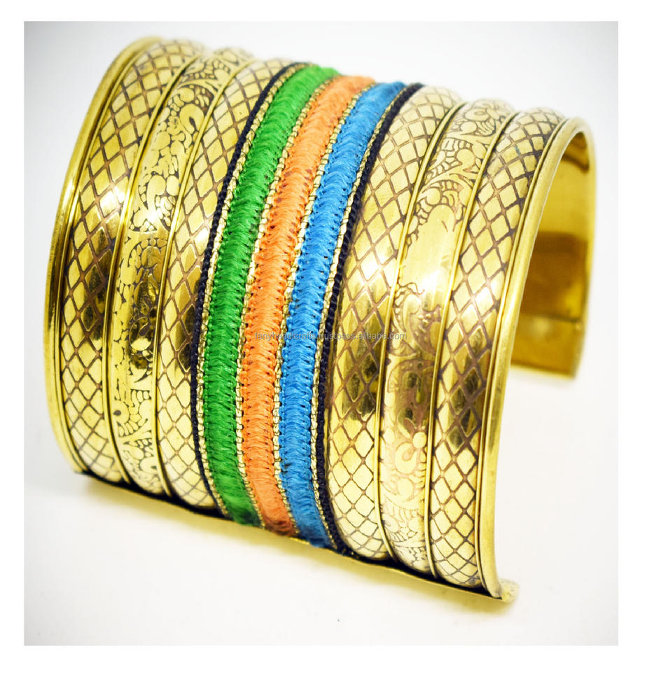 Bracelets en laiton plaqué, gravés avec des motifs magnifiques, faits sur mesure, avec incrustations de résine, pour la décoration de mariage et les cadeaux