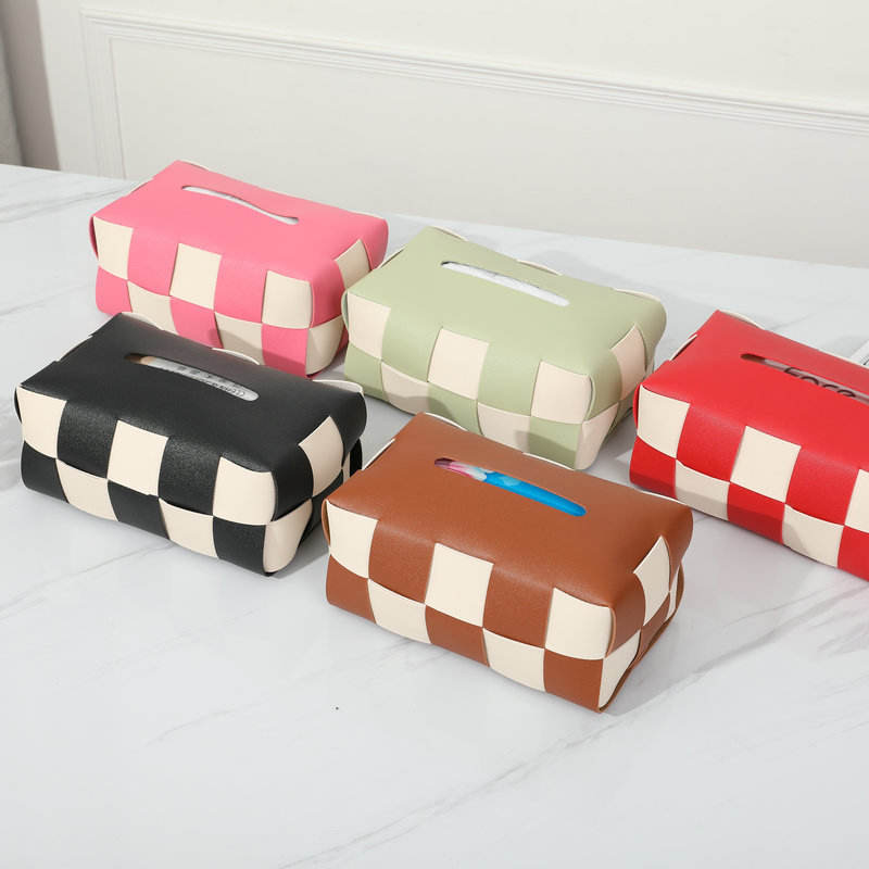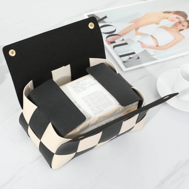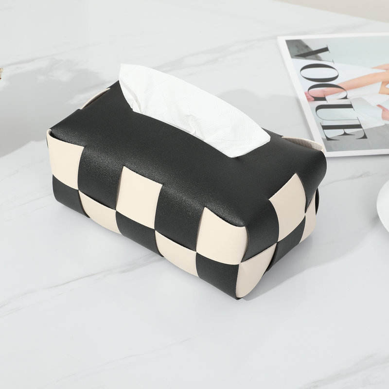 Boîte à mouchoirs en cuir à carreaux noir et blanc, sur mesure, imperméable, multi-usages, faite à la main pour la maison, le salon, la chambre à coucher