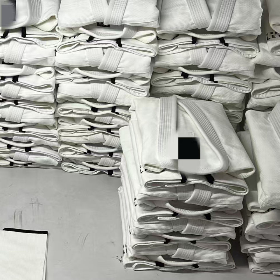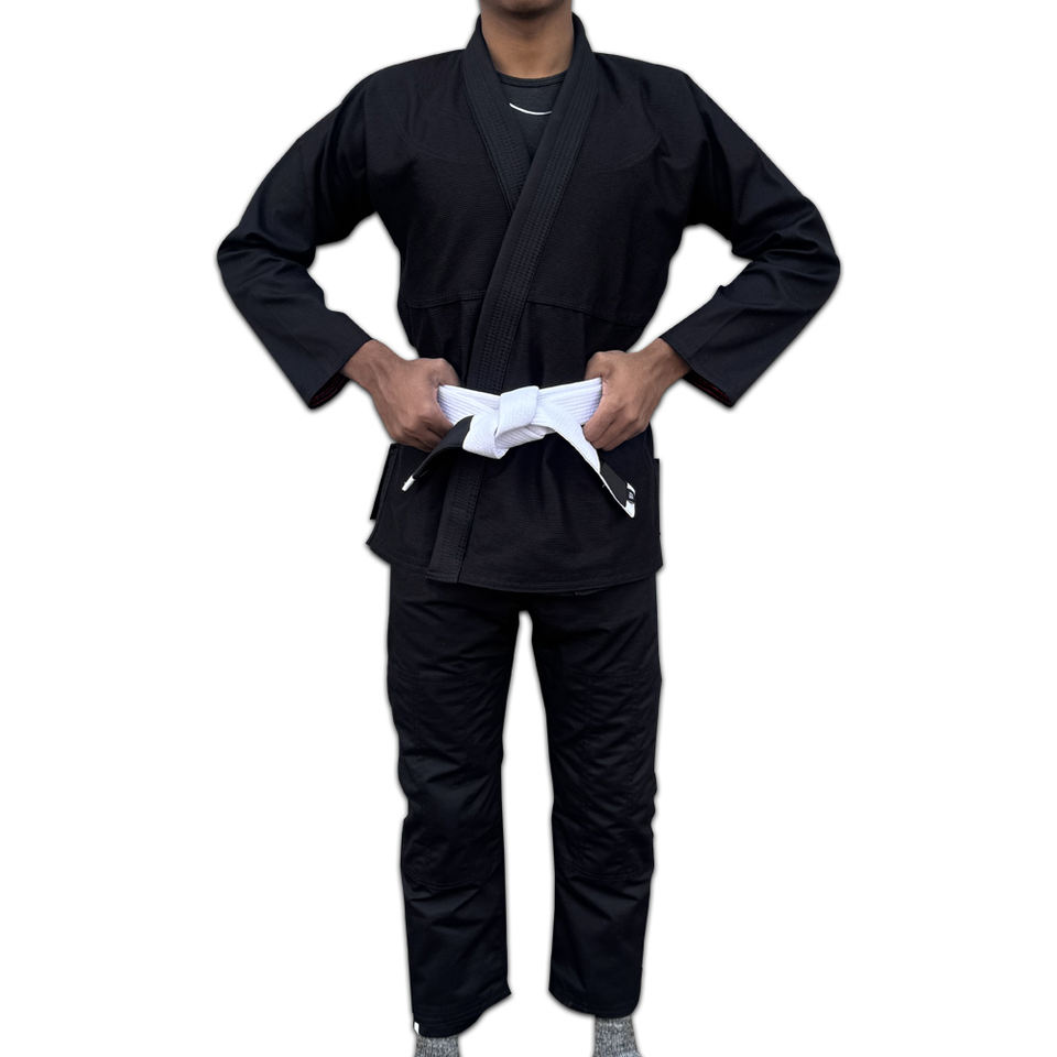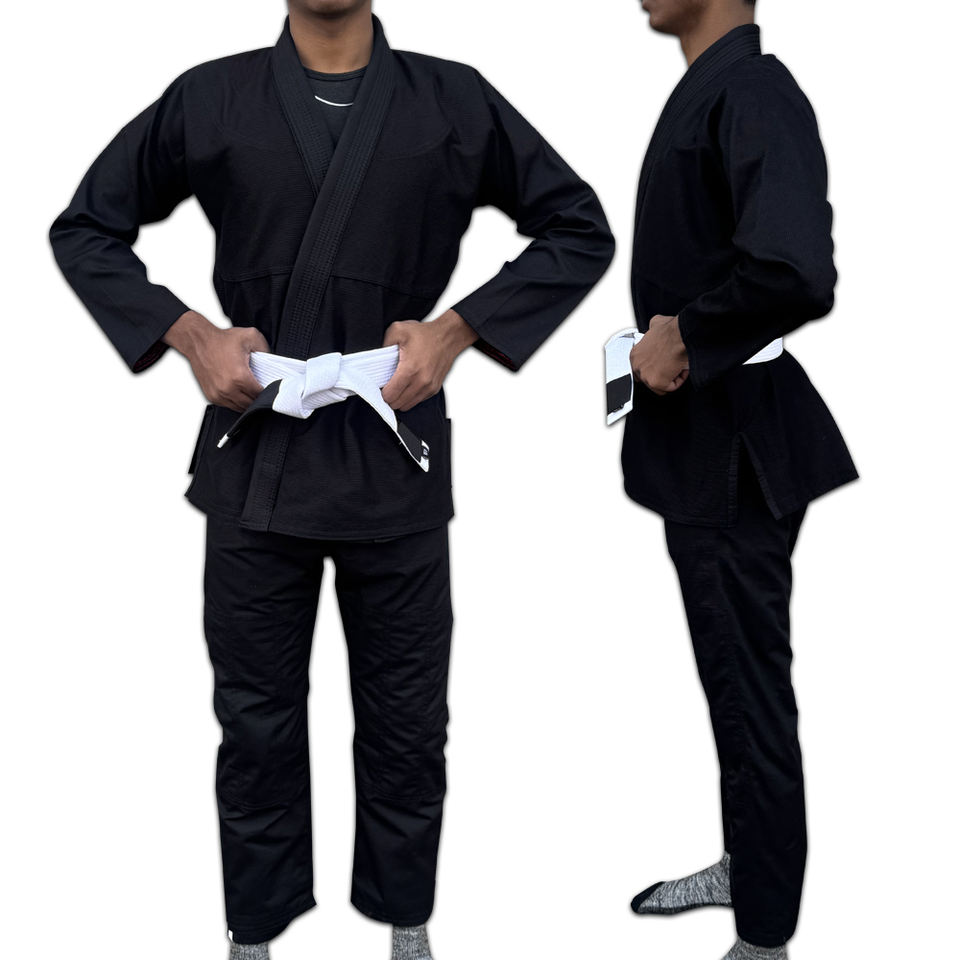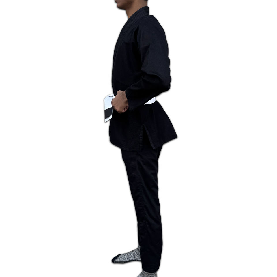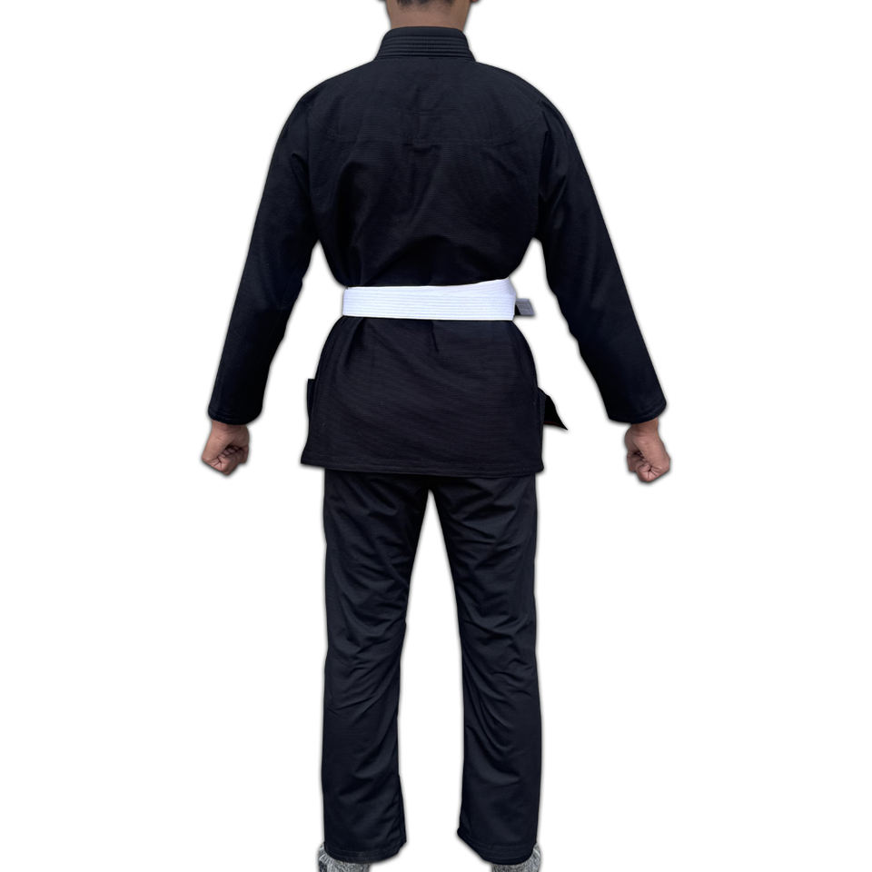 Kimono de Jiu-Jitsu noir sur mesure 450 g/m² en tissage perlé avec personnalisation pour arts martiaux