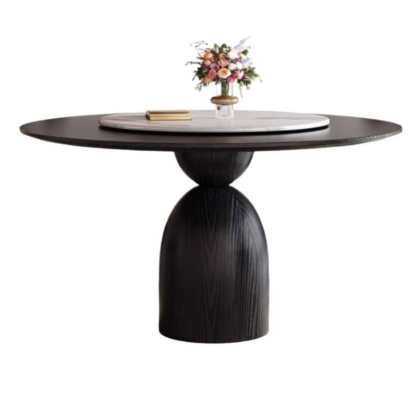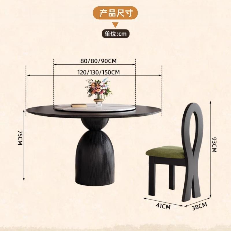 Table et chaises rondes rétro noires sur mesure en placage de bois, style vintage français rotatif pour salle à manger