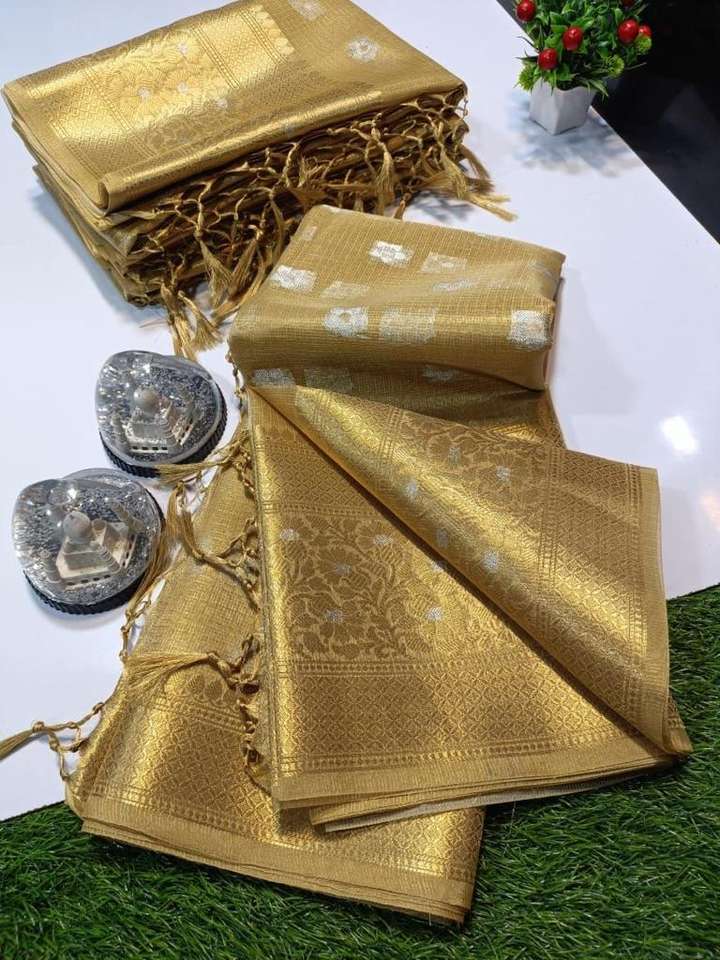 Sarees en soie brocart sur mesure dans les couleurs blanc et or avec des motifs floraux complexes idéal pour la revente par les magasins de vêtements