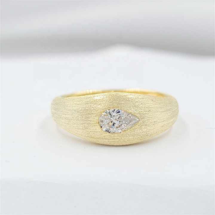 Bague éternelle en argent sterling plaqué or 18 carats sur mesure, finition satinée mate, zircone en forme de poire, sertissage pavé