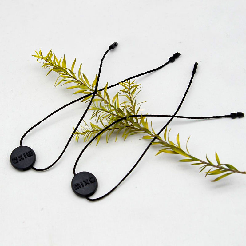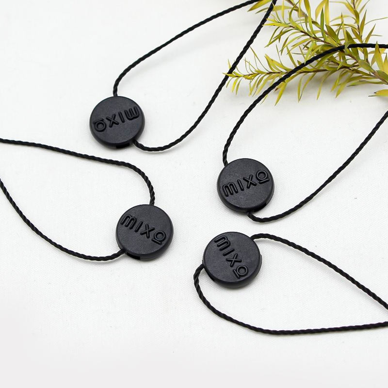 Custom Made Clothing Hang Tag Lock Mail Bag Plastic Seal with Personalized Name Tag String Nylon Cord Loop Stoppers