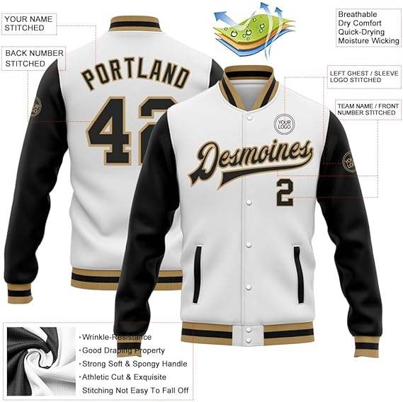 Logo de club sur mesure Nom de l'équipe Nom et numéro du joueur Veste respirante pour hommes Veste de baseball universitaire pour hommes