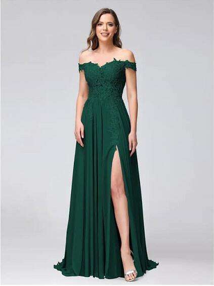 Robes de demoiselle d'honneur en mousseline de soie avec appliques en dentelle, sur mesure, couleur personnalisée, grande taille, épaules dénudées, fente haute, longues, pas chères, pour les fêtes