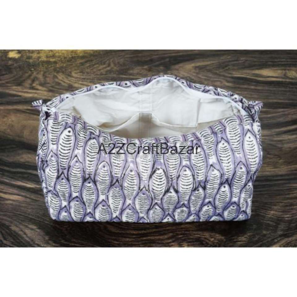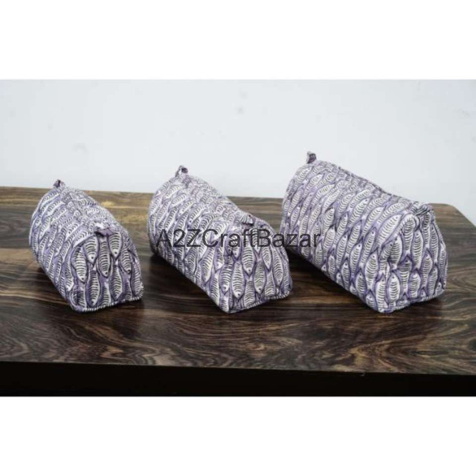 Ensemble de pochettes de voyage en coton imprimées à la main sur mesure avec fermeture éclair, disponible en 3 tailles, idéal pour les magasins de textiles de maison pour la revente