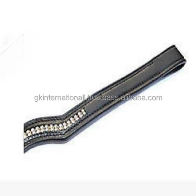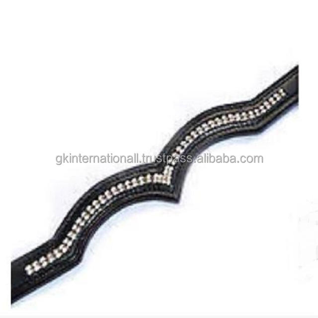 Bande de front de cheval en cuir Double conception de couronne sur mesure pour brides avec 2 rangées de cristaux clairs décoratifs strass chaîne Bling
