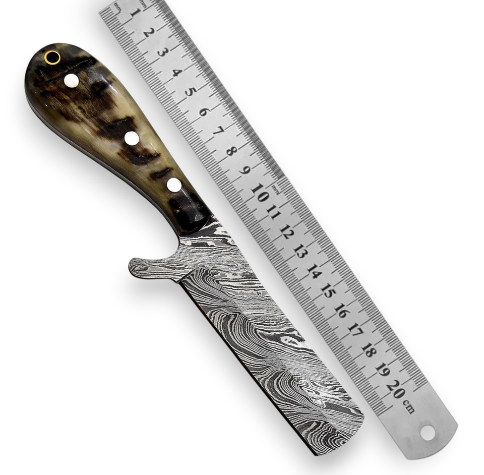 Couteau de boucher en acier Damas de qualité industrielle OEM, manche en corne de bœuf, lame pleine, couteau de chasse et de camping, étui pour crêpes