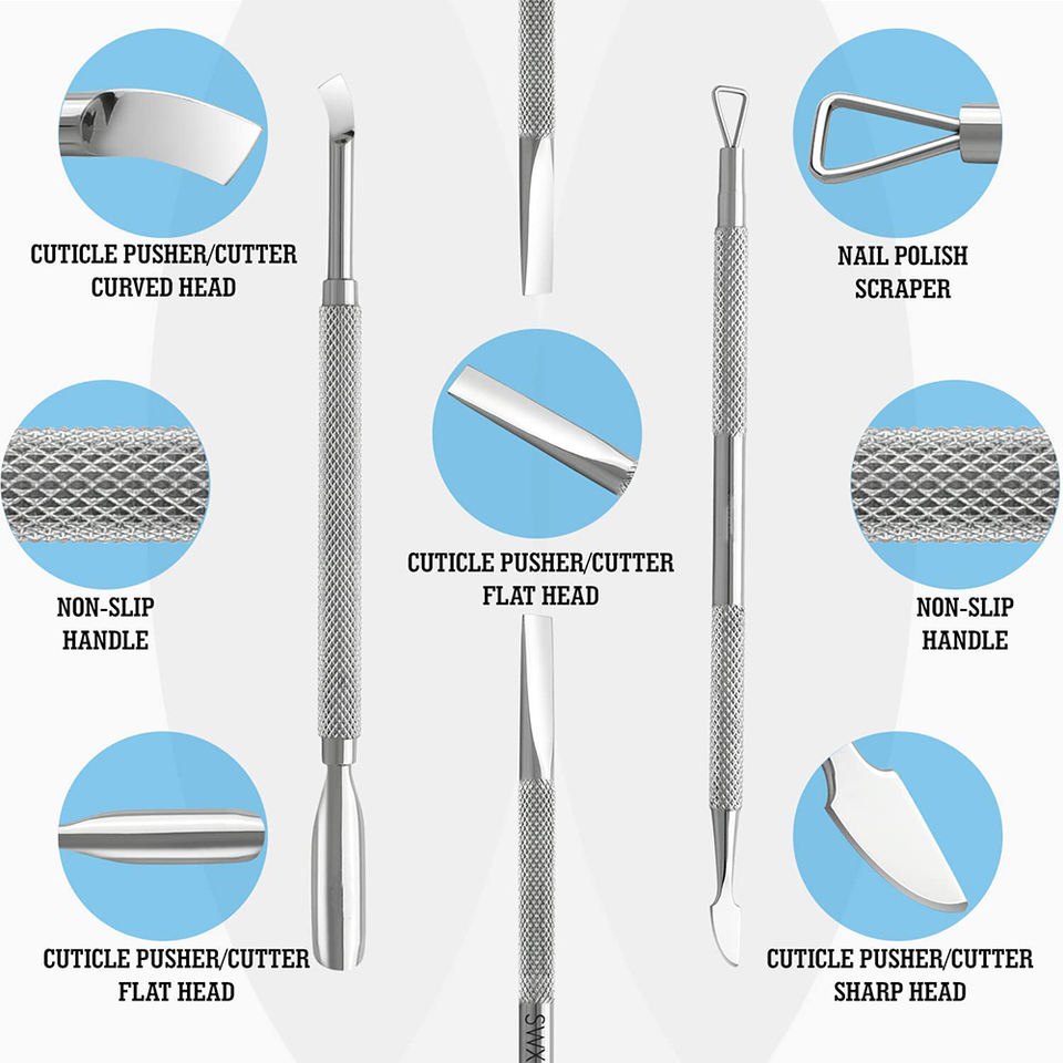 Grattoir de peau morte d'acier inoxydable de poussoir d'ongle de double extrémité sur mesure pour l'outil cosmétique de poussoir de cuticule de manucure