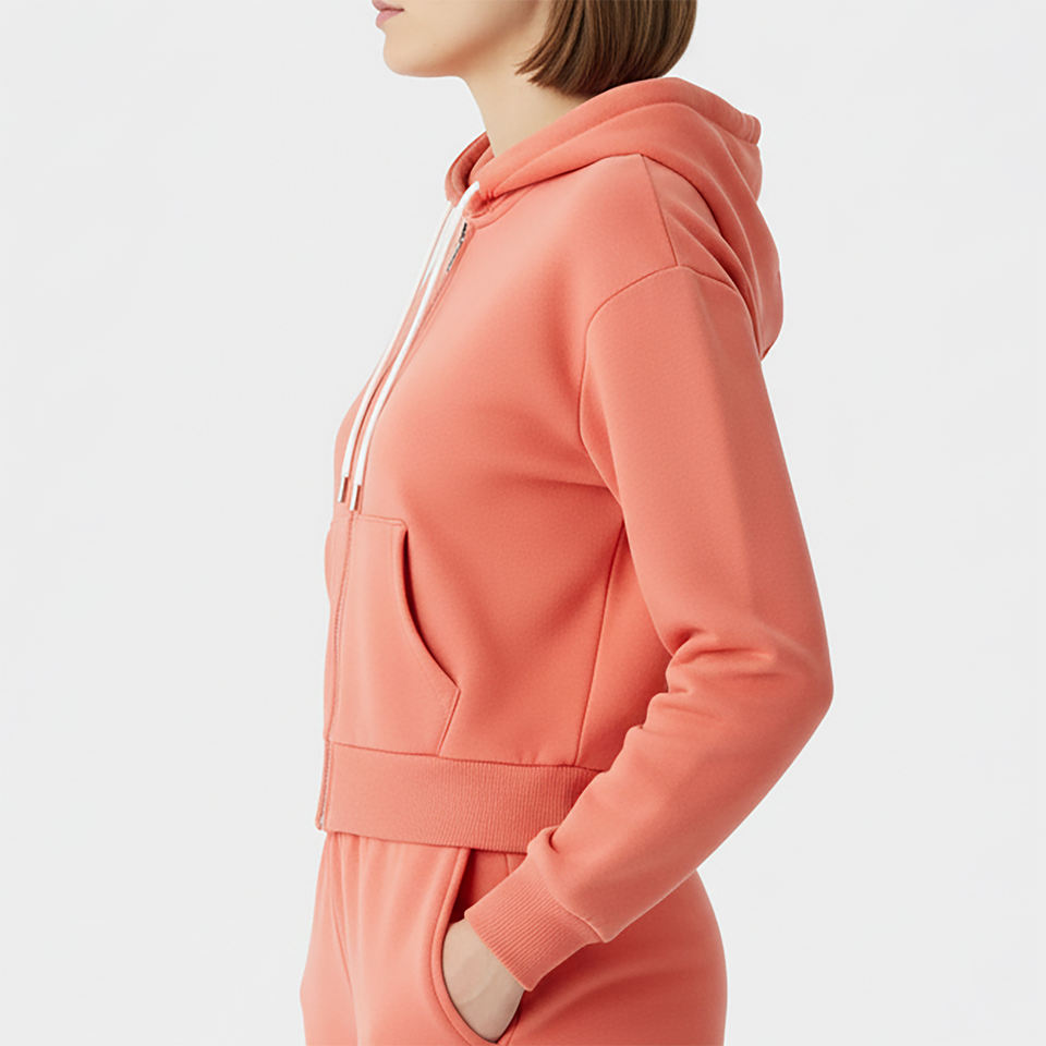 Haut court à manches longues et épaules tombantes sur mesure, sweat à capuche zippé pour femmes, 100% coton molletonné, léger, respirant, broderie 3D
