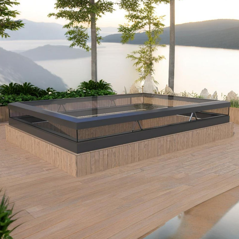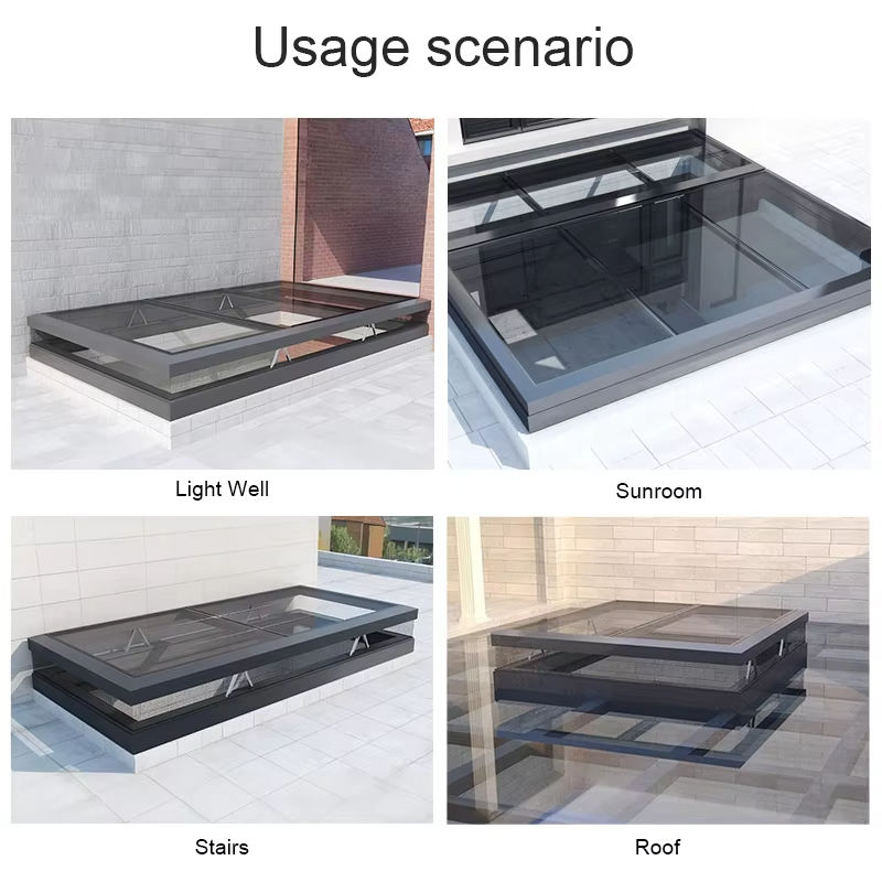 Puits de lumière électrique à levage vertical sur mesure Ventilation en alliage d'aluminium Éclairage à isolation thermique Fenêtre en verre à toit plat