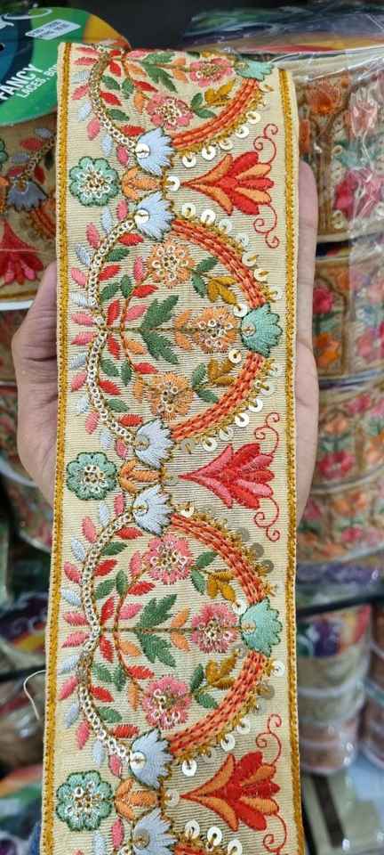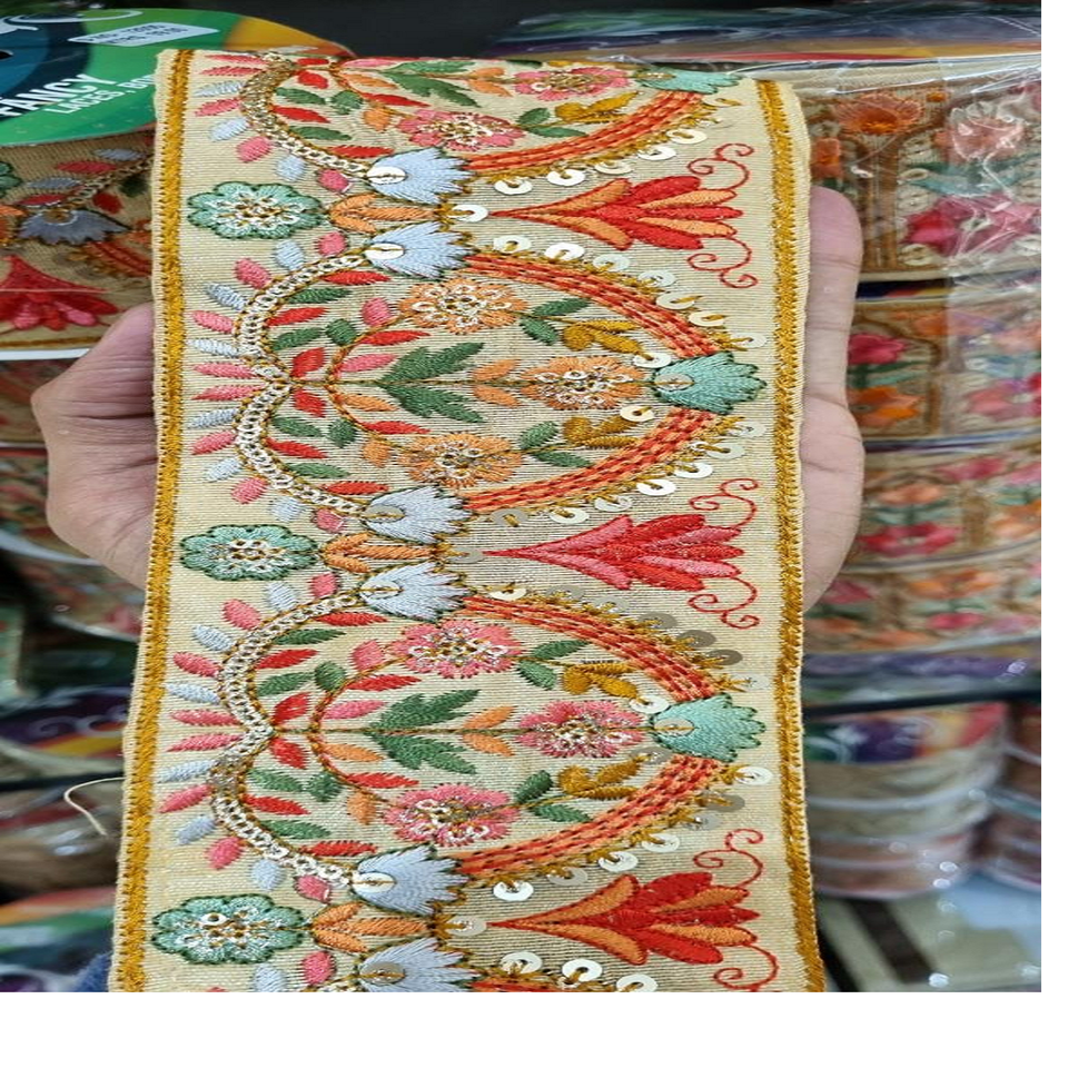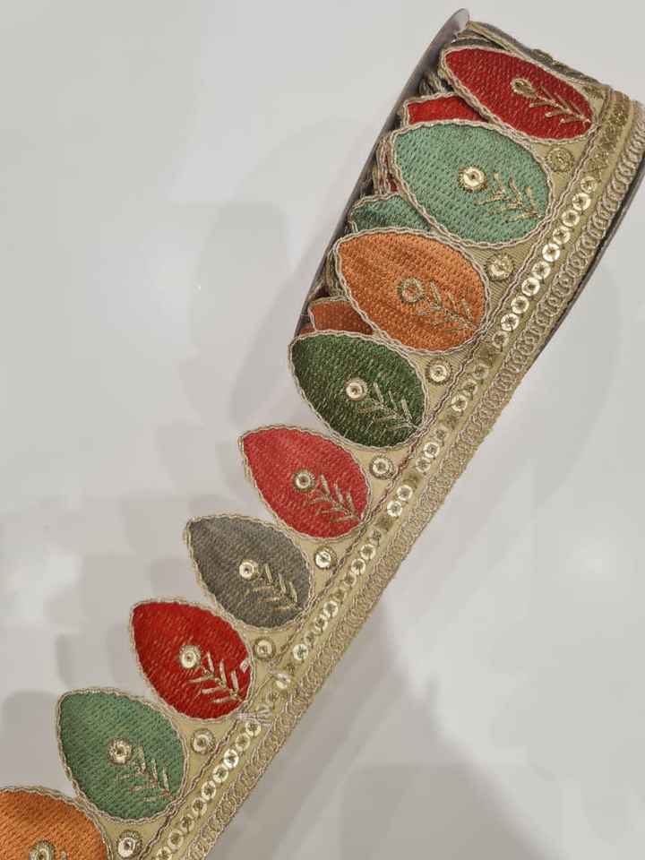 1 dentelle ethnique brodée sur mesure, 2.5 pouces, avec broderie de fleurs rouges, pour les stylistes de vêtements