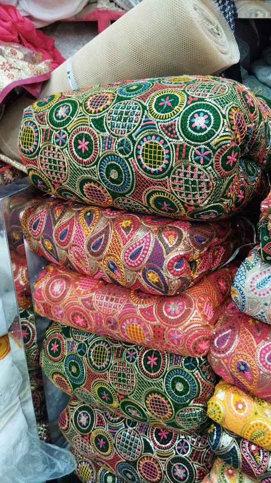 Tissus brodés sur mesure avec travail en miroir et broderie sur le thème indien coloré, idéaux pour les créateurs de robes à revendre