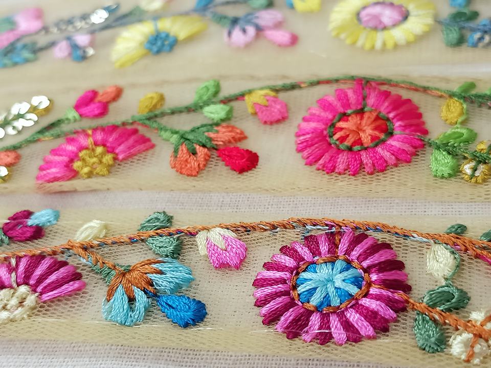 Lacets de travail brodés sur mesure avec options multicolores en broderie de paillettes en largeur de 1.5 pouces