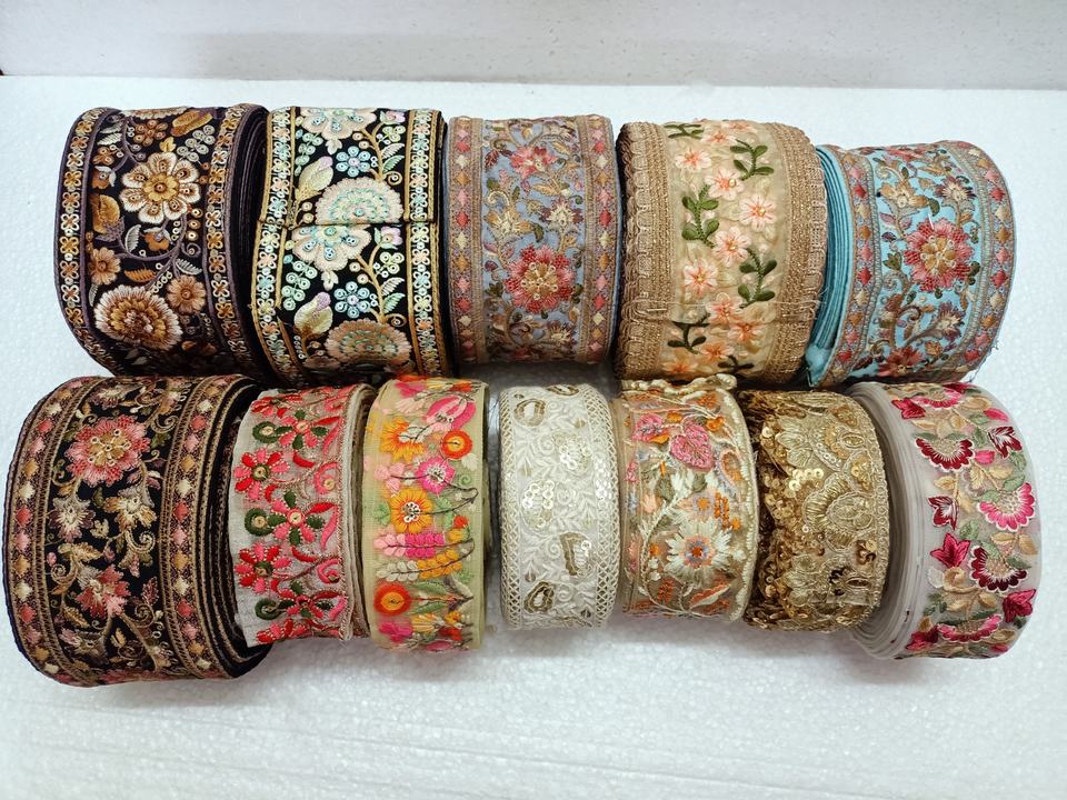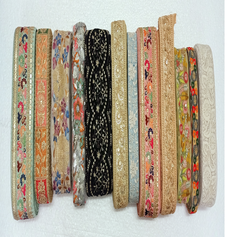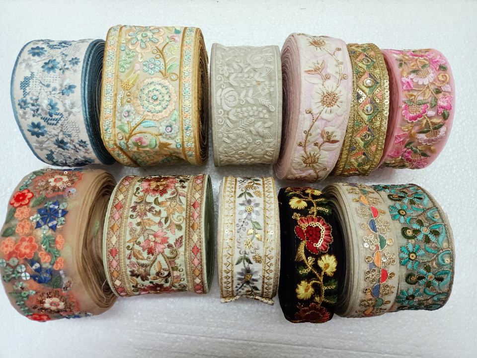 Lacets de travail en fil brodé sur mesure avec options multicolores en broderie de paillettes en 1 et 1.5 pouces de largeur