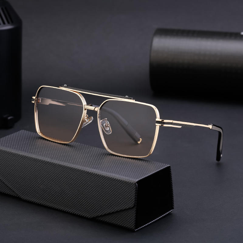 Lunettes de soleil carrées de style européen et américain sur mesure pour hommes, protection UV400, verres PC noirs, emballage en boîte WF 5G56