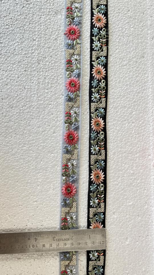 Fleurs sur mesure brodées de trois manières de couleur dans des motifs floraux ethniques à des fins diverses en largeur de 1.25 pouces.