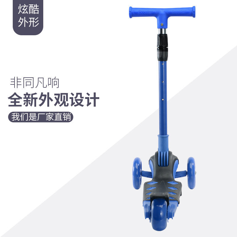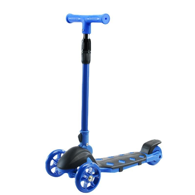Trottinette pliable sur mesure à trois roues pour enfants de 3 ans et plus, bleue, hauteur réglable
