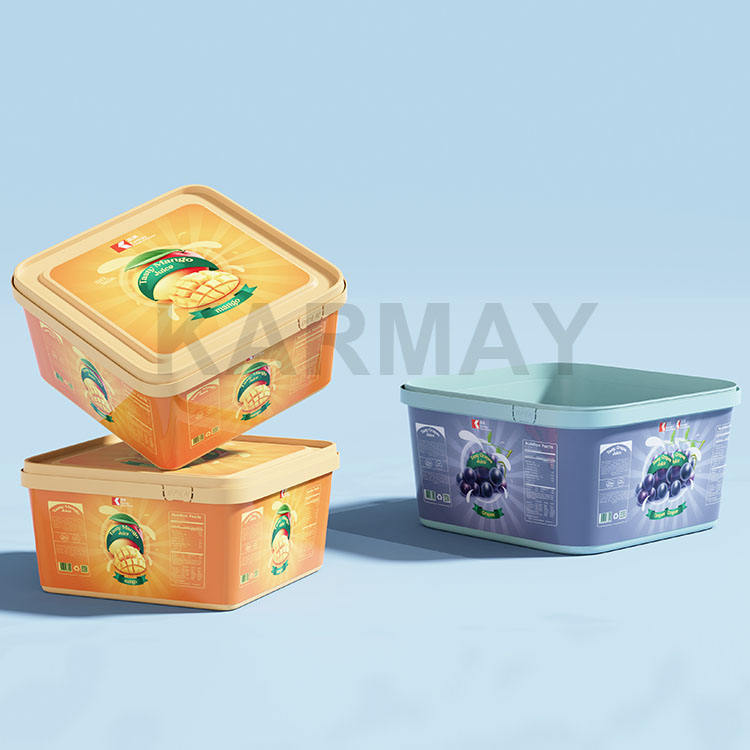 Emballage alimentaire en plastique sur mesure, récipient carré de 2 litres, autocollant inviolable, seau de lait de culture de yaourt glacé