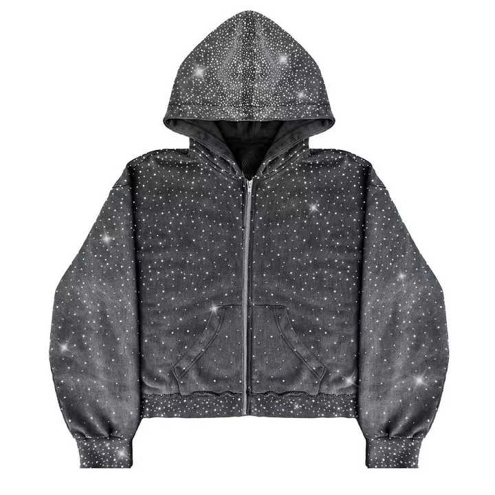Sweat à capuche entièrement zippé personnalisé avec strass pour homme, 100% coton molletonné, vêtement d'hiver tendance, logo personnalisé pour homme