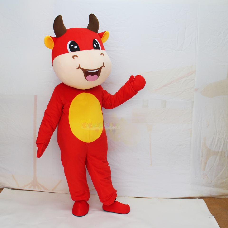 Costume de mascotte de vache Red Bull Animal en peluche drôle sur mesure déguisement adulte déguisement publicité Promotion fête Costume de mascotte à vendre