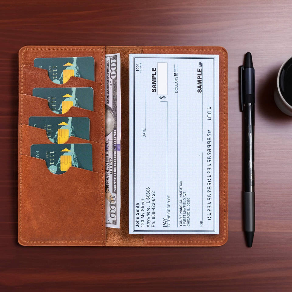 Marque nom:Leather Checkbook Holder
