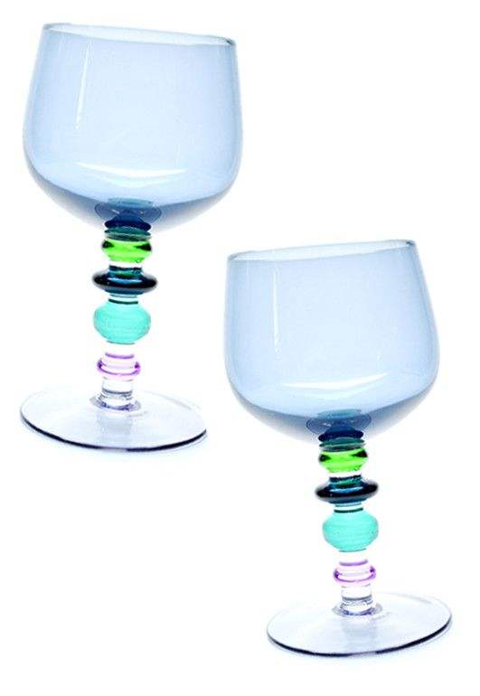 Gobelet à vin en verre borosilicaté sans plomb multicolore soufflé à la main sur mesure avec tige colorée