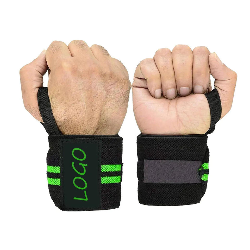 Bandes de poignet élastiques antidérapantes sur mesure, robustes, pour l'entraînement physique, couleur noir-vert, pour la musculation