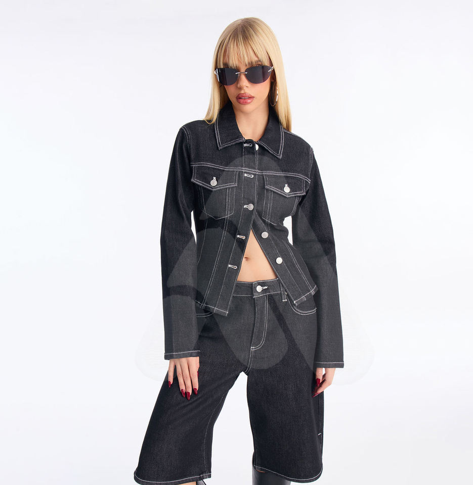 Veste en jean pour femme de haute qualité sur mesure Nouveau design Vente en gros Veste en jean noire pour femme