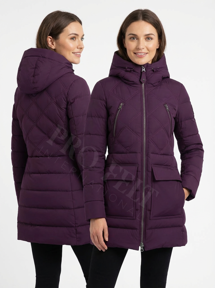 Veste matelassée d'hiver à capuche sur mesure, veste rembourrée chaude, fermeture éclair, poches avant, veste matelassée légère surdimensionnée