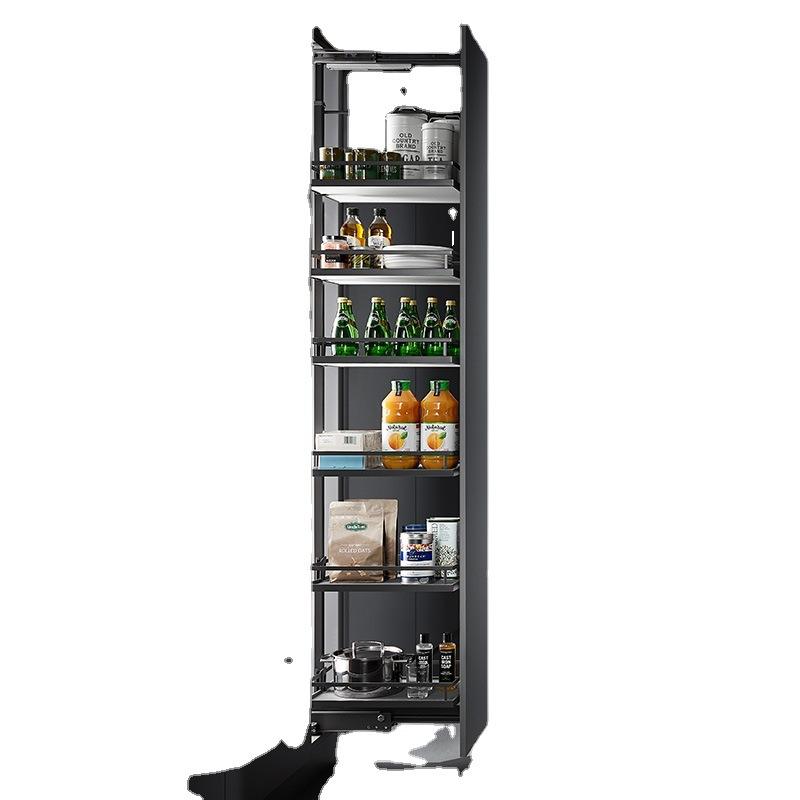 Armoire de cuisine sur mesure, rangement haut et profond, panier coulissant Nano, design minimaliste, multifonction, fer chromé
